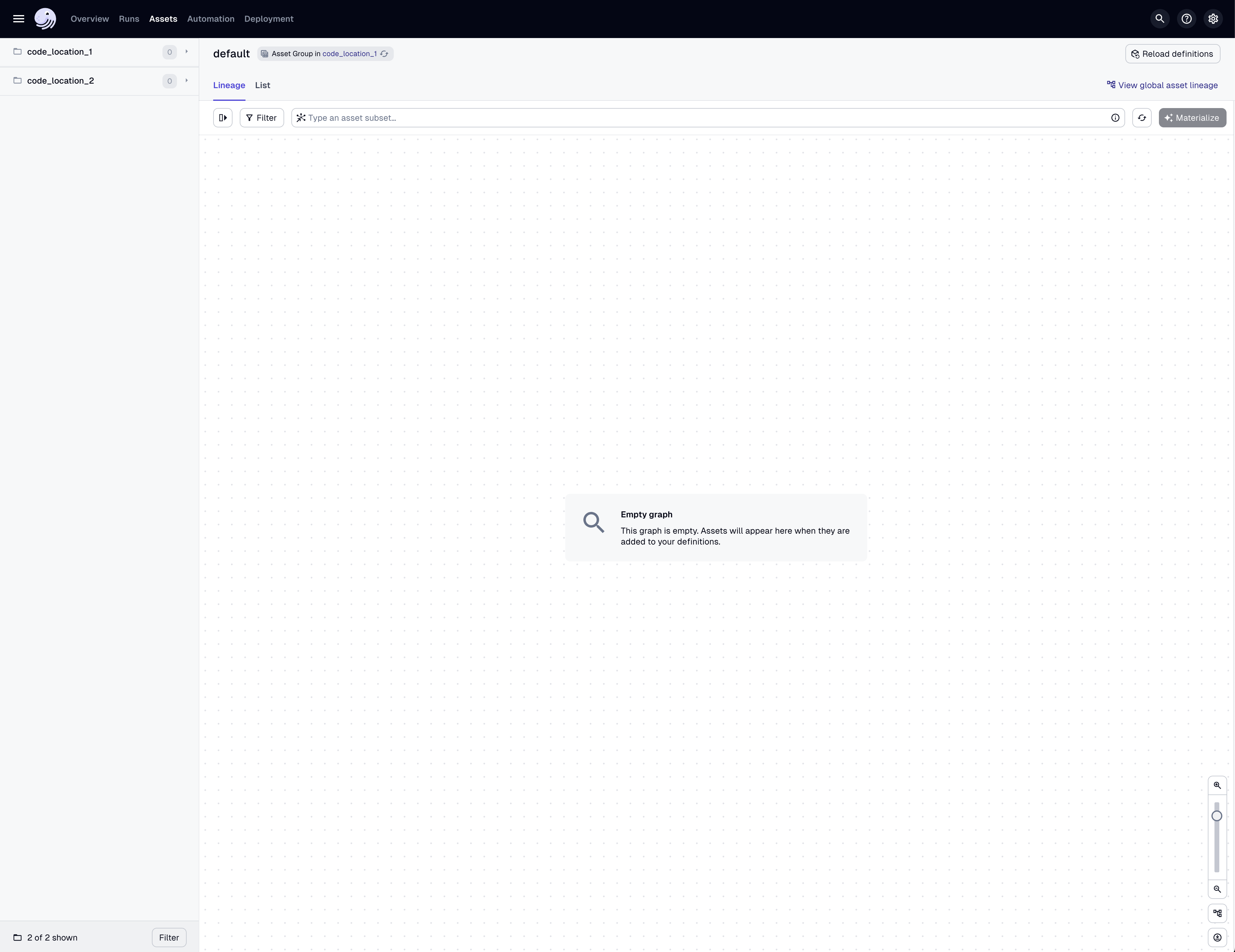 back in the workspace root directory and load up the Dagster UI in a browser: